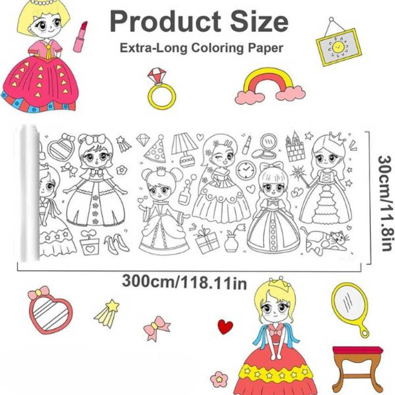 Rola ofera 3 m x 30 cm de suprafata pregatita pentru desen si colorat, potrivita pentru pereti, mese si panouri de lucru. Markerele includ doua varfuri, aproximativ 6 mm pentru umplere si 1 mm pentru contur si detaliu precis.