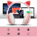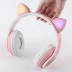 - • Design modern – scaun roz elegant si casti cu urechi pisica atractive.