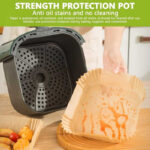 Setul este optim pentru utilizare zilnica, integrand hartie de copt termorezistenta in formula set 200 hartii de copt air fryer. Dimensiunile precise ajuta la pozitionare corecta si acoperire uniforma a suprafetei active.