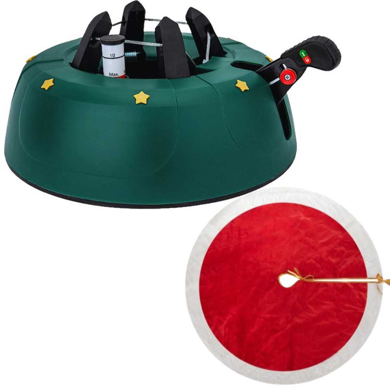 Set suport brad cu rezervor 2 l din abs verde si covoras brad 90 cm rosu alb
